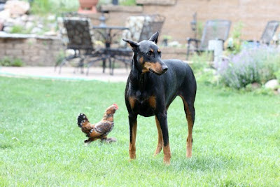 in the yard with the chickens out and could care less about them. Everyone that