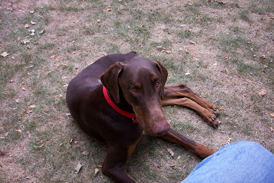 Hey me Cooper here! Check out my new red collar dobe-dad bought! Moved into my new home and things are going very well. I have been a very good boy. This is me in my yard. My new dobe-dad had a brand new fence installed just for me. I am so lucky to have my special someone. Thanks to everyone for helping me find my new forever home!