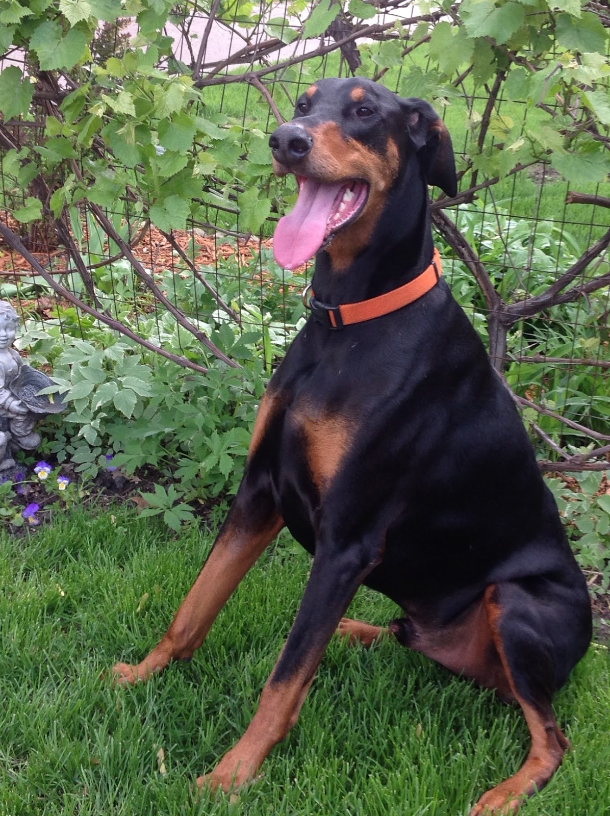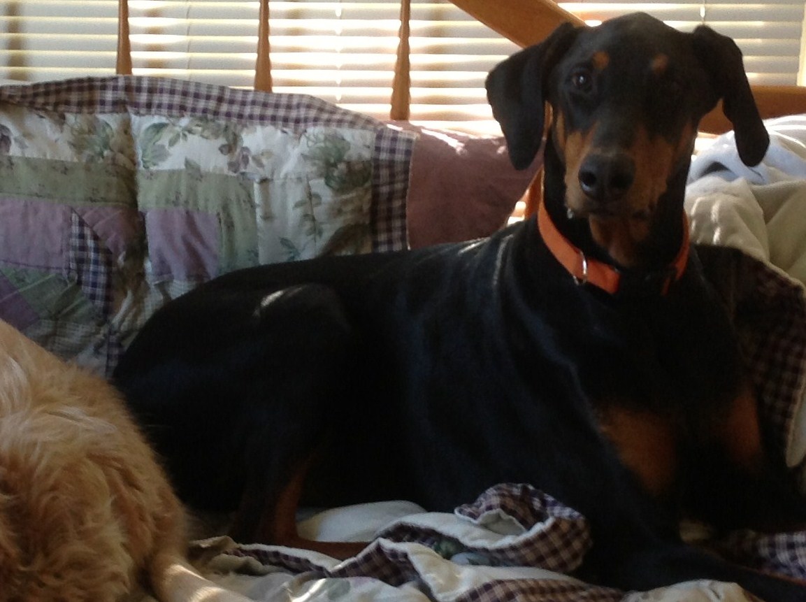 more enjoyable. Keeps my dobe figure in shape too. I am really trying to stay under 90 pounds and I totally hate getting on the scale, so running keeps my belly in check, I know its so worth it, but I still hate it. I really like the long walk routine we do, that is by far my most favorite thing to do, and hey if you like to go on long car rides, I love to ride shotgun. I promise to sit quietly and not tell you how to drive. I am a great passenger my foster family tells me. If you want me to sit in the back seat, that’s OK too. I will still keep my dog food hole closed while you drive-Promise-you won’t hear a peep from me! Can you believe I am still looking for my forever home. It has to be the right home as I am a pretty picky Doberman. I want a fenced yard, lots of kitties to cuddle with, no dogs as I want to be King of my castle. I want my royal subjects, my adoptive people, to serve me and only me. I love to be petted over and over, and don’t really want to share this luxury with another four legged canine. In return I will protect you and promise my loyalty forever.