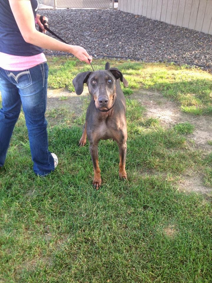 Hi All, I am new to DRM and looking for a new name! I am 2-ish years old, a blue doberman boy, and I have a bad eye. Can’t see out of the darn thing! People were not so nice to me, but I love everyone really. Not a mean bone in me! I am starting a new life and need a new name. What should I be called? Hmmmm???