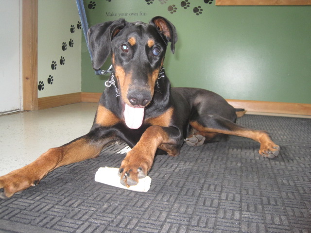 Monty, 1 year old male Doberman, happy, playful, easy going!