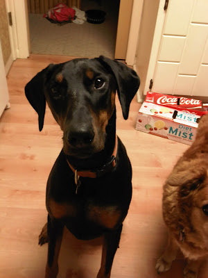 Alex is a 1 1/2 year old, black and tan, neutered, male doberman. He is a perfect example of the typical young male doberman, inquisitive, active, loving, active, super smart, active, velco boy and did we say active? Alex is on the go all the time and loves to play with his foster family and their dogs. Alex is a really, really smart boy and has been through formal obedience. He knows many commands and would love to do more formal obedience with his new owners. He would do awesome at rally or agility given he is so active and smart. He is completely housebroke and rings his bell when he needs to go outside to do his business, his foster mom says is a very GOOD bell ringer. Alex would love to be in an active family that can get him out everyday to burn off his energy so he does not become bored and destructive. Alex is up to date on all vaccines, heart-worm Negative, micro-chipped and neutered.