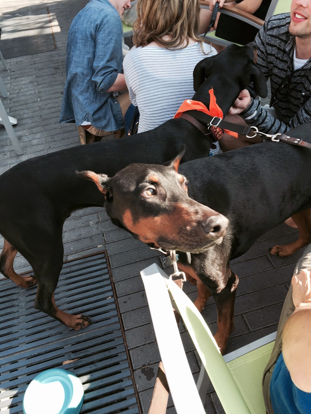 Hello! I got to go along with my foster family to spend some time on a patio this afternoon! A beautiful day, the sun was shining and lots of people stopped by to visit us!! Wow, what an afternoon! Thank you Freehouse for allowing dogs on your patio!