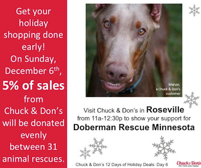 We are thrilled to be the beneficiary of Chuck & Don’s! Stop in and shop during open hours at any location in Minnesota on December 6th and 5% of your purchase will be donated to 31 different rescues! Each organization will receive an equal part of 5%, so please encourage your friends and family to shop on December 6th!